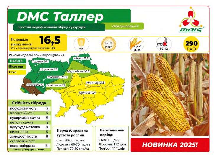 Гібрид ДМС Таллер – це новинка сезону. Середньоранній гібрид з ФАО 290.