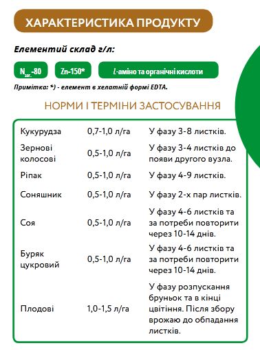 Ярило Цинк 150 - концентроване цинкумісне добриво для живлення культур вимогливих до даного елементу. Швидке і повне проникнення цинку досягається за рахунок хелату EDTA. Добриво має відмінну сумісність з фосфорними добривами, що запобігає випадання осаду.