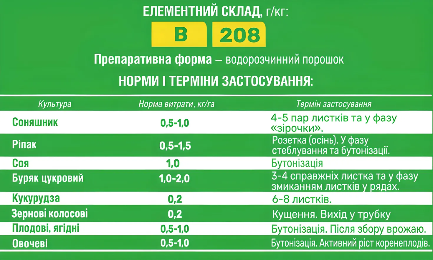 Ярило Злато Бор 21 – концентроване добриво на основі легкодоступних форм бору представлених високорозчинними боратами для підживлення культур, особливо чутливих до нестачі бору.