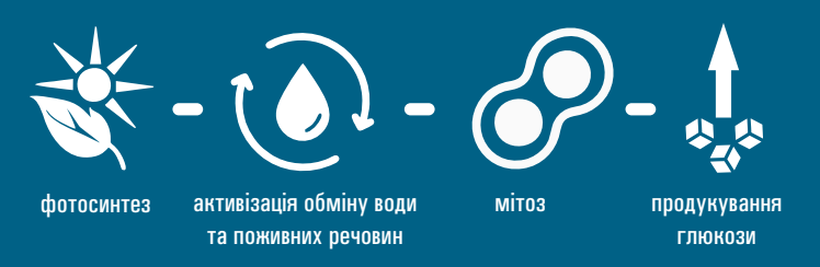 ЦЕЙ ЕФЕКТ ДОСЯГАЄТЬСЯ ЗАВДЯКИ ПОТРІЙНОМУ ВПЛИВУ НА РОСЛИНУ ДІЮЧИХ РЕЧОВИН СТИМУЛЯТОРА SUNLIPS® НА КЛІТИННОМУ РІВНІ, А САМЕ: